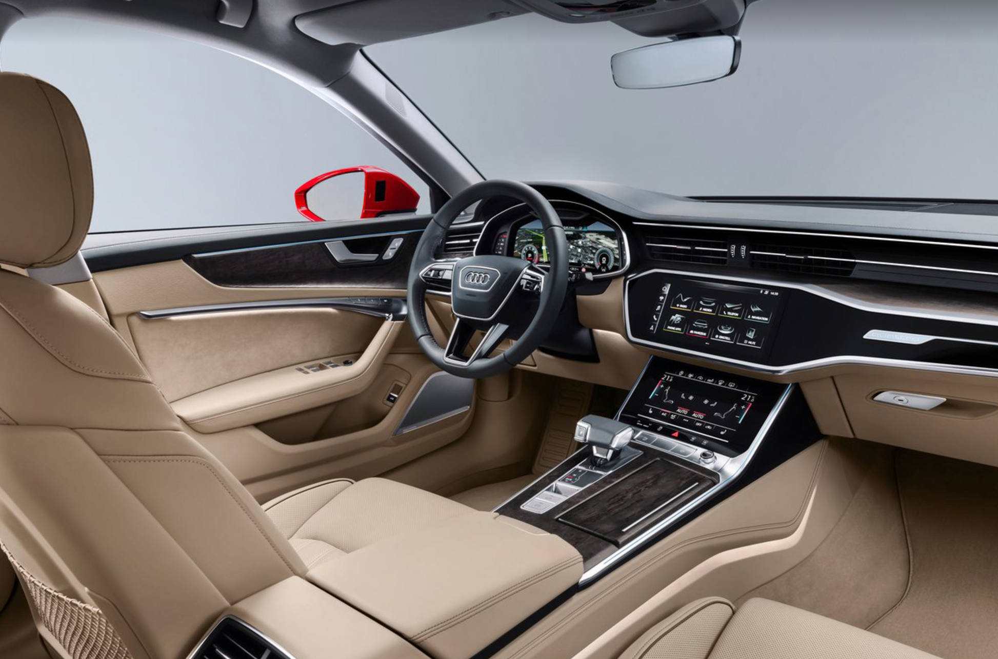 아우디 A6 실내 인테리어는 고급스러운 소재와 현대적인 디자인이 조화를 이룹니다. 대시보드와 컴포트 시트가 적용되었습니다. 디지털 계기판과 터치 디스플레이를 통해 차량 기능을 제어할 수 있습니다. 실내 무드 조명 패키지 기능도 있어 감성을 더해줍니다.